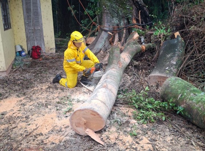 Foi realizada a remoção controlada de uma árvore em área residencial no Norte da Ilha