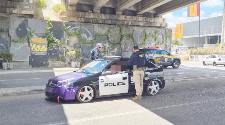 Automóvel caracterizado como viatura policial dos EUA é abordado em fiscalização da PRF