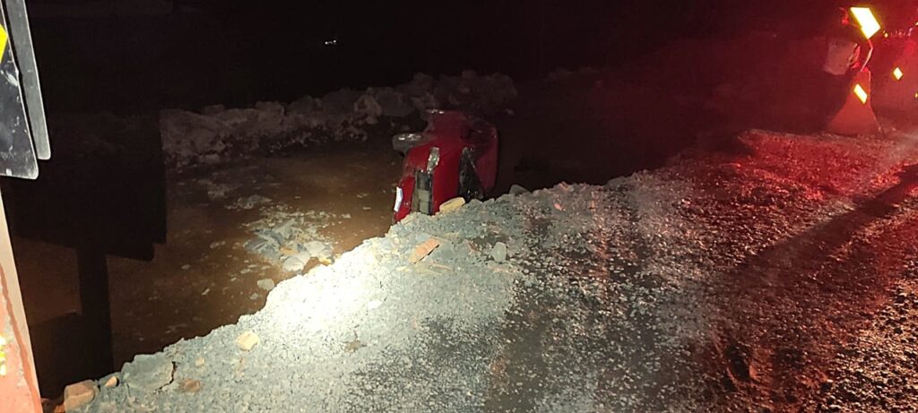 Automóvel tomba em obras da SC-114 em São Joaquim