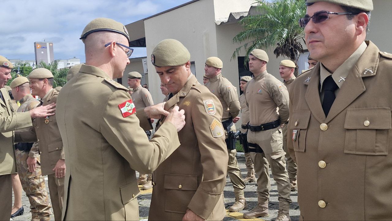 Nesta sexta-feira (31), foi realizada, na sede do 5º Batalhão de Polícia Militar (BPM), a solenidade alusiva ao aniversário de 44 anos do 5º Batalhão de Polícia Militar, Entrega de Medalhas e Promoção de Praças da Polícia Militar de Santa Catarina (PMSC).