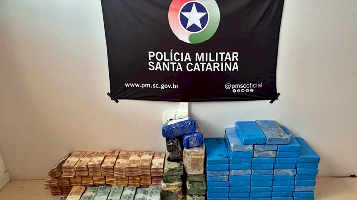 A Polícia Militar de Santa Catarina (PMSC), por meio do Bope, apreendeu cerca de R$ 810 mil em espécie e uma grande quantidade de drogas durante uma abordagem na tarde desta quarta-feira (19), em São José. Um homem de 66 anos foi preso na ação, que ocorreu por volta das 13h15, na rua República dos Guaranis. Ele foi interceptado ao sair de uma residência transportando o dinheiro em um veículo.