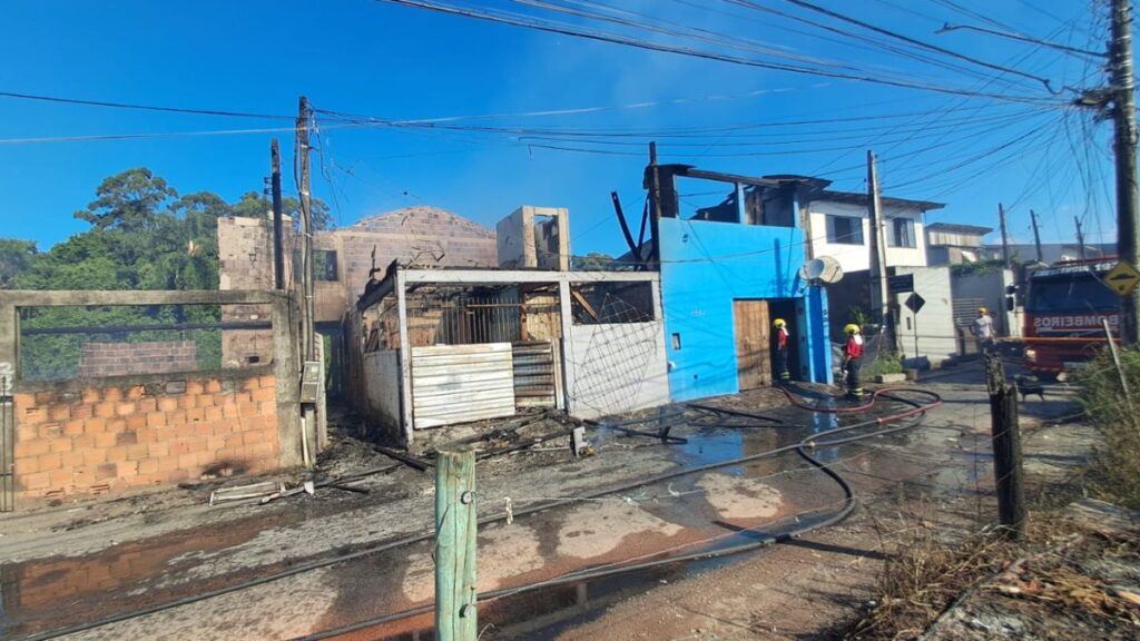 Imagem mostra residência destruída após as chamas terem sido combatidas. Foto: Divulgação/CBMSC.As informações do Corpo de Bombeiros Militar (CBM) afirmam que o fogo iniciou por volta das 14h, na Rua Otto Hoier. Quando as equipes de socorro chegaram no local, o fogo já havia consumido a terceira casa. A perícia dos bombeiros ainda deve confirmar a causa do incêndio.
