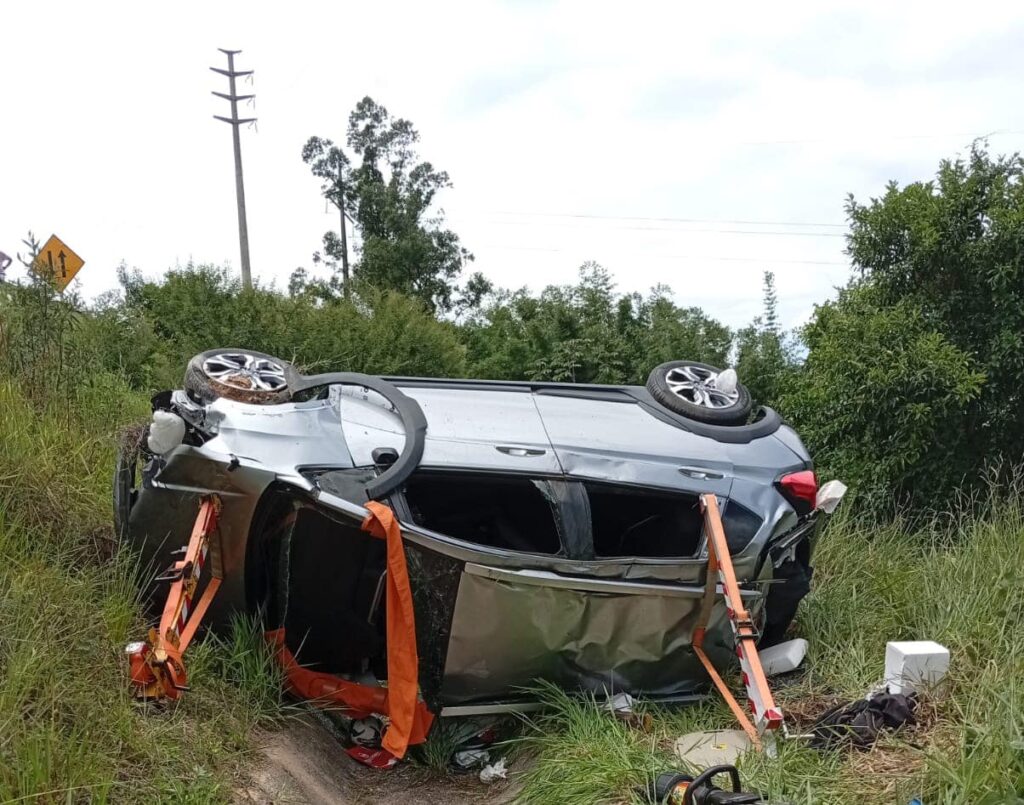 O condutor de um veículo Honda CR-V com placas de Porto Alegre ficou ferido após uma saída de pista, seguida de capotamento e queda em ribanceira de aproximadamente 6 metros, às margens da Rodovia BR-101, em Jaguaruna, no início da tarde desse domingo, 02, por volta das 13h.