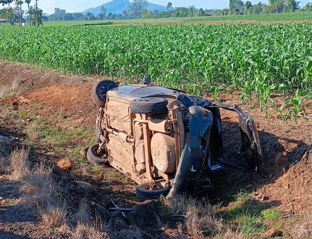 A equipe de socorro foi acionada para atender a um capotamento de veículo com vítimas possivelmente presas nas ferragens, na BR-285, no bairro Rodeiro da Areia, em Turvo.