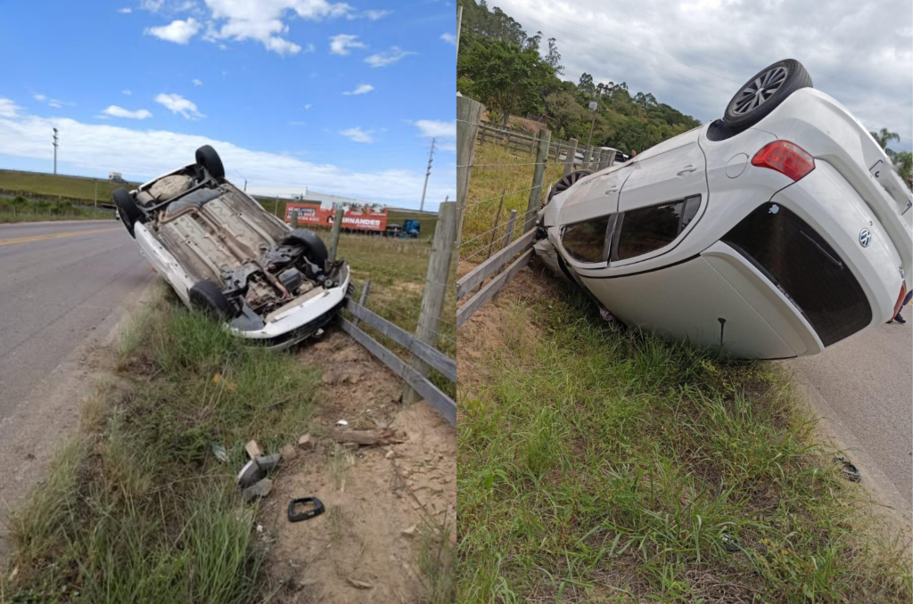 Durante esta sexta-feira (28), os Bombeiros Voluntários atenderam uma ocorrência ode um veículo capotou na SC-SC-441, na Costa da Lagoa, em Jaguaruna, na rodovia de acesso à cidade de Treze de Maio.