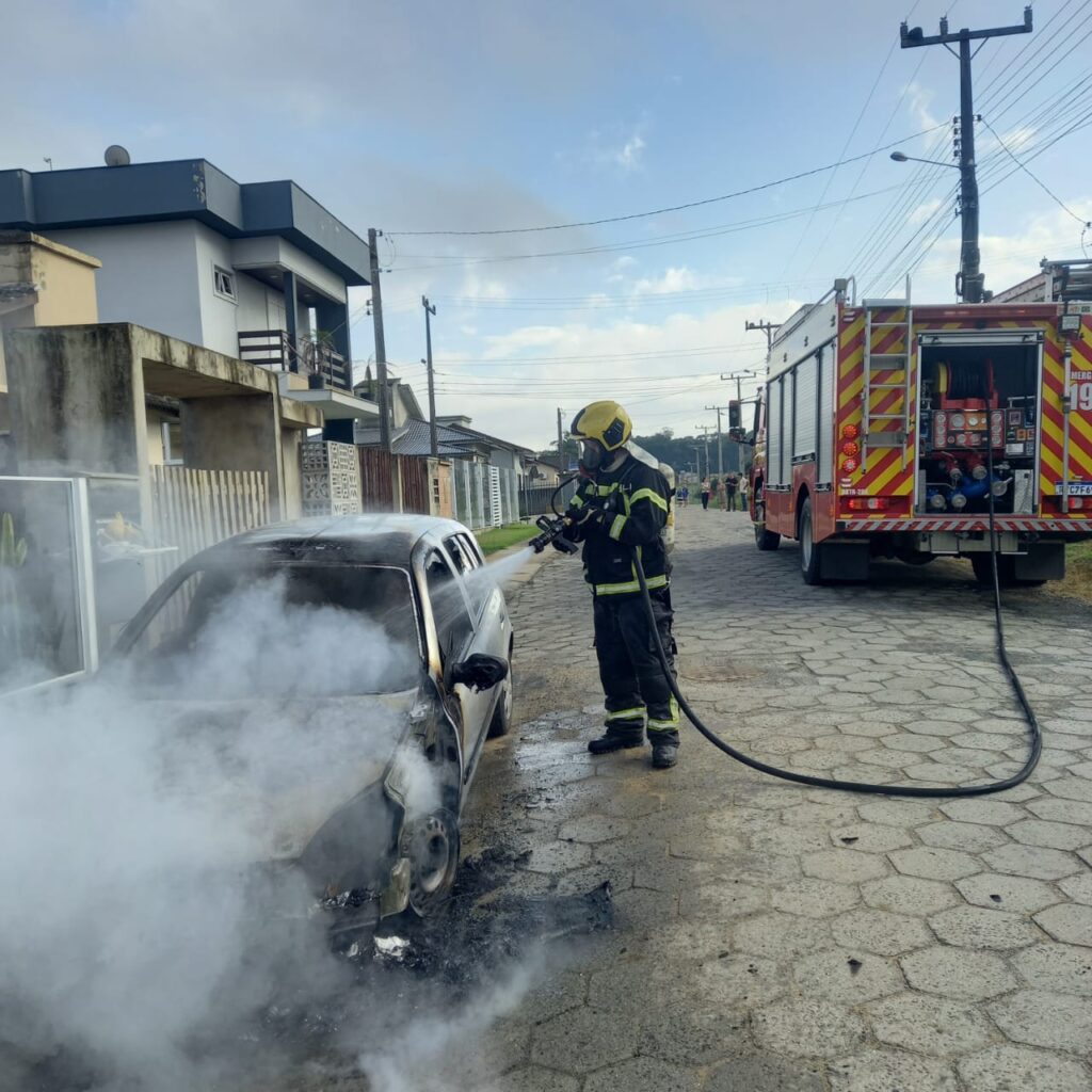 Um carro pegou fogo na manhã desta quinta-feira (10), em Criciúma. A ocorrência foi registrada na rua Antônio Machinski, bairro Imigrantes.