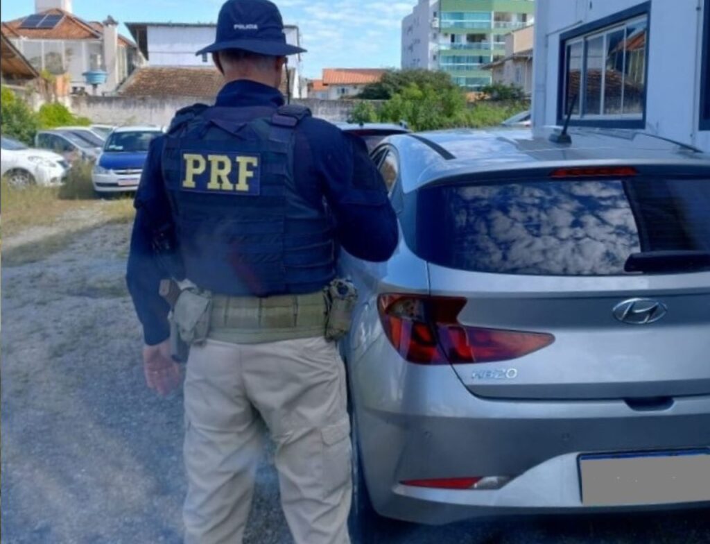 No final da tarde desta segunda-feira (09), policiais rodoviários federais (PRFs) recuperaram um Hyundai HB20 roubado em São Paulo e que circulava com placas clonadas na BR-101, em Palhoça, Santa Catarina.