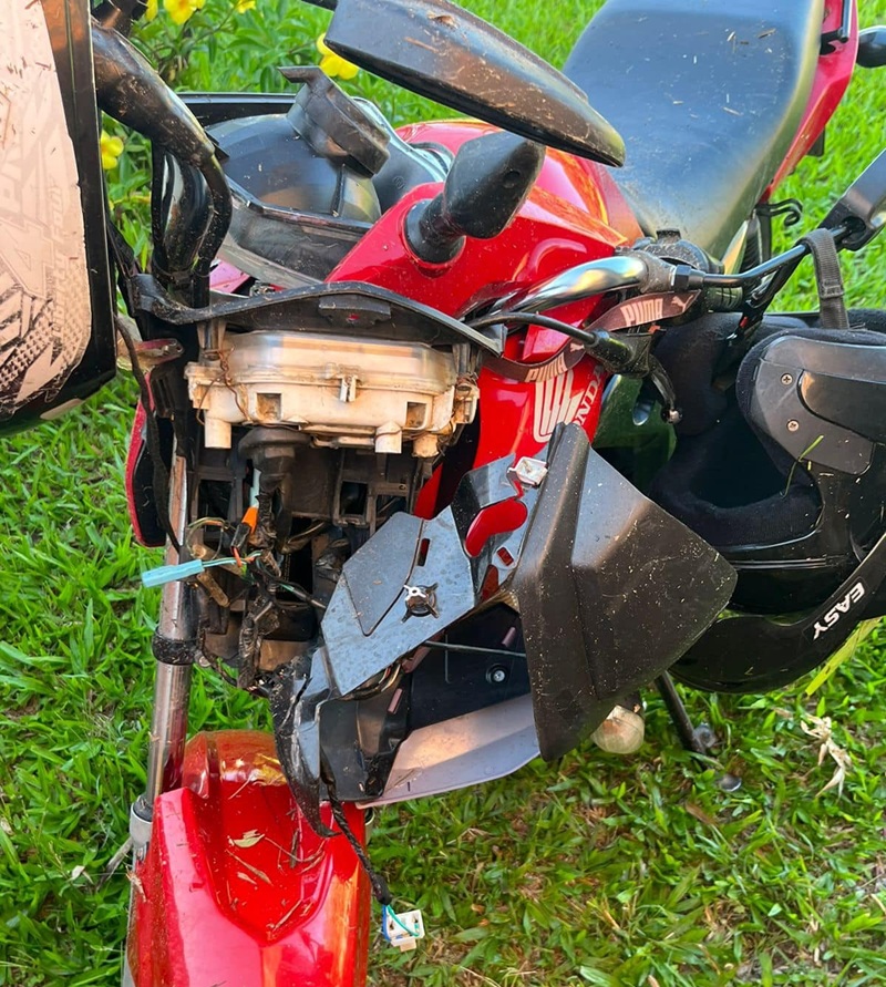 No local, a guarnição se deparou com as duas vítimas, um homem, de 30 anos, condutor da motocicleta com placas de Forquilhinha que encontrava-se deitado no acostamento da via e queixava-se de dor na perna esquerda, na região do joelho e dor no tórax.
