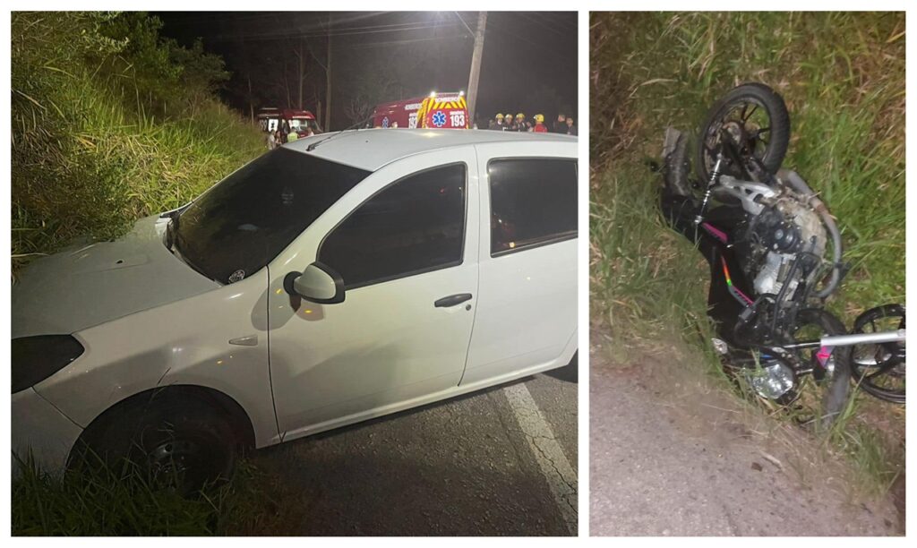 A colisão entre um automóvel e uma motocicleta provocou a queda de um condutor de outra motocicleta na noite dessa segunda-feira, 25, por volta das 20h, na Rodovia Ismael Thomás Prevê (SC-441), no bairro São Gabriel, em Treze de Maio.