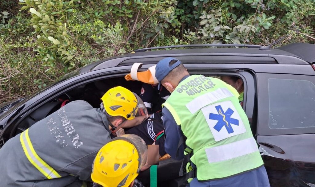 A vítima encontrava-se consciente, porém desorientada e apresentava um ferimento na cabeça. Após uma avaliação minuciosa da situação, os bombeiros iniciaram os procedimentos de resgate. Utilizando equipamentos especializados, como a meia-maca e a maca rígida, a equipe conseguiu liberar o homem do veículo, realizando a retirada pela porta do motorista.