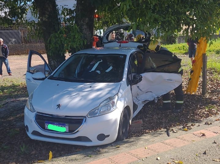 Na manhã deste sábado, 05, por volta das 8h, uma colisão entre dois automóveis deixou a condutora de um dos veículos presa nas ferragens, na Rua Giácomo Sônego Neto, no bairro Pinheirinho, em Criciúma.