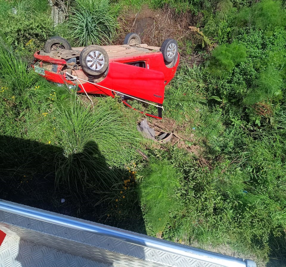 A condutora do veículo , uma mulher, de 58 anos, foi encontrada sentada no vão da porta do automóvel capotado, consciente, orientada e com sinais vitais estáveis.