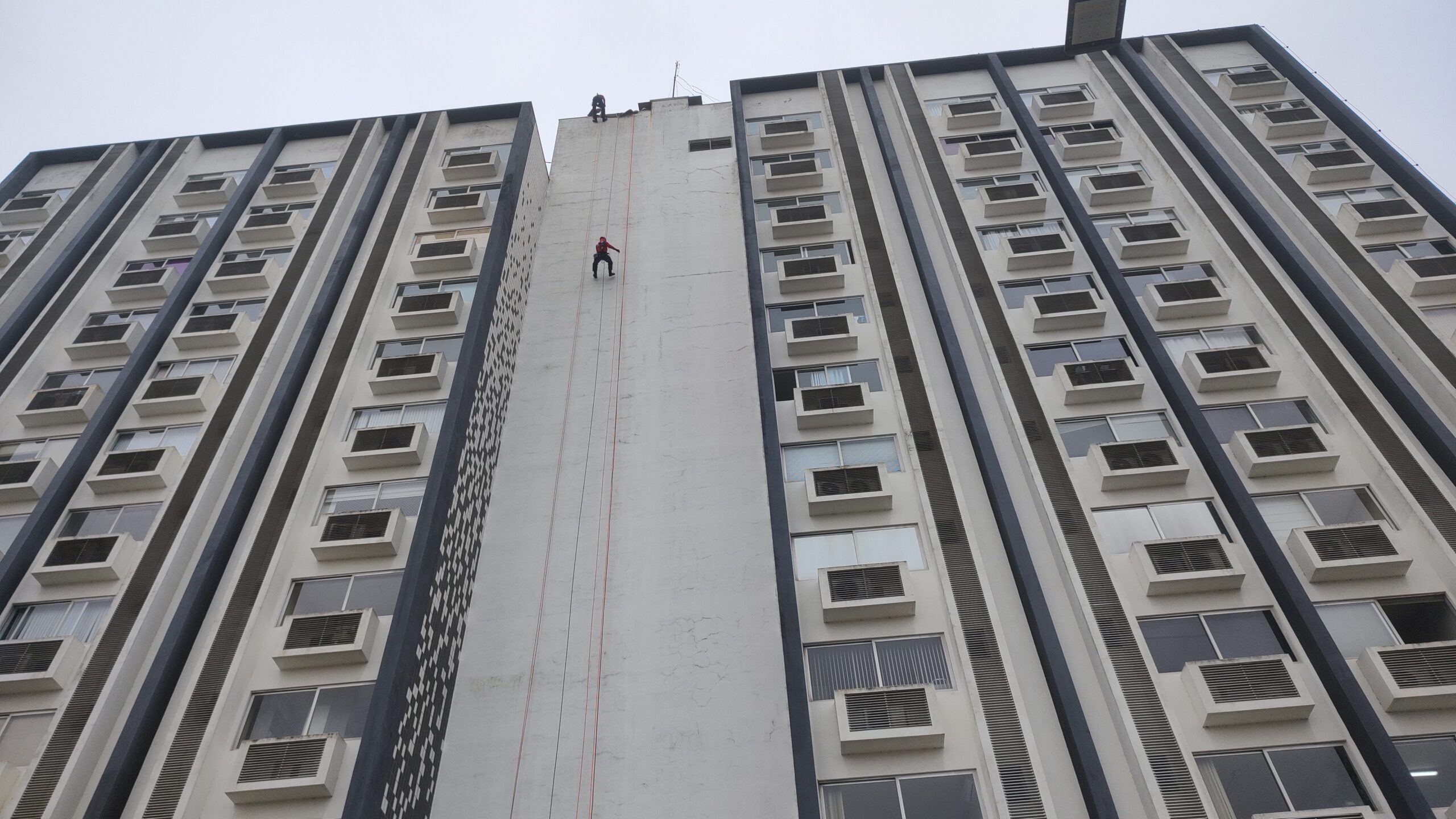 A ação teve início às 7h40 da manhã e tem duração do dia inteiro, com o treinamento sendo finalizado às 17h40. O treinamento consiste em técnicas de acesso e resgate utilizando o rapel da equipe de salvamento em altura do Corpo de Bombeiros.