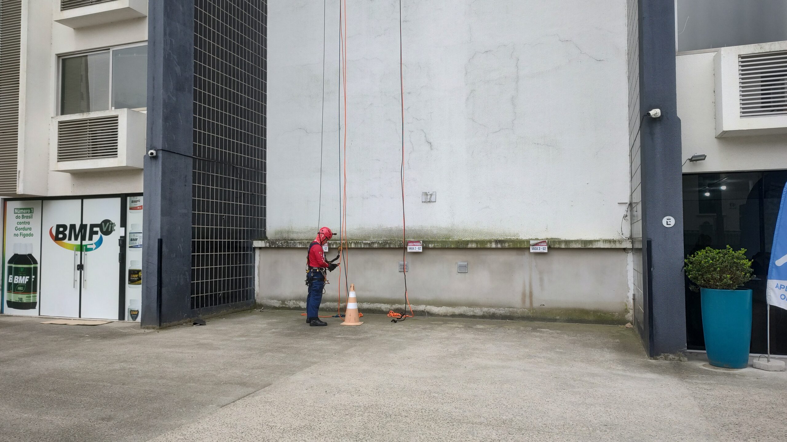 Quem passou pela Rua Coronel Cabral e observou o edifício EJB se deparou com uma cena que chamou a atenção. O que acontece, é que o 8º Batalhão de Bombeiros Militar de Tubarão realiza um treinamento de rapel no local.