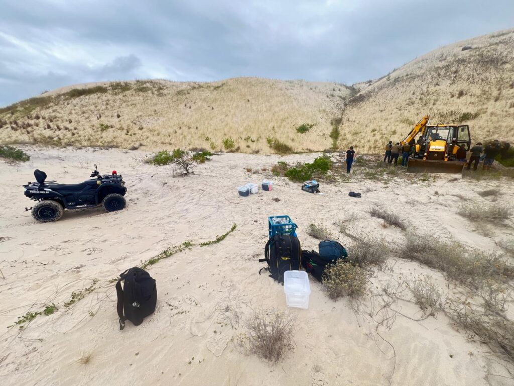 A ação aconteceu nas dunas da comunidade do Siri, em Florianópolis, onde foi encontrado um corpo enterrado