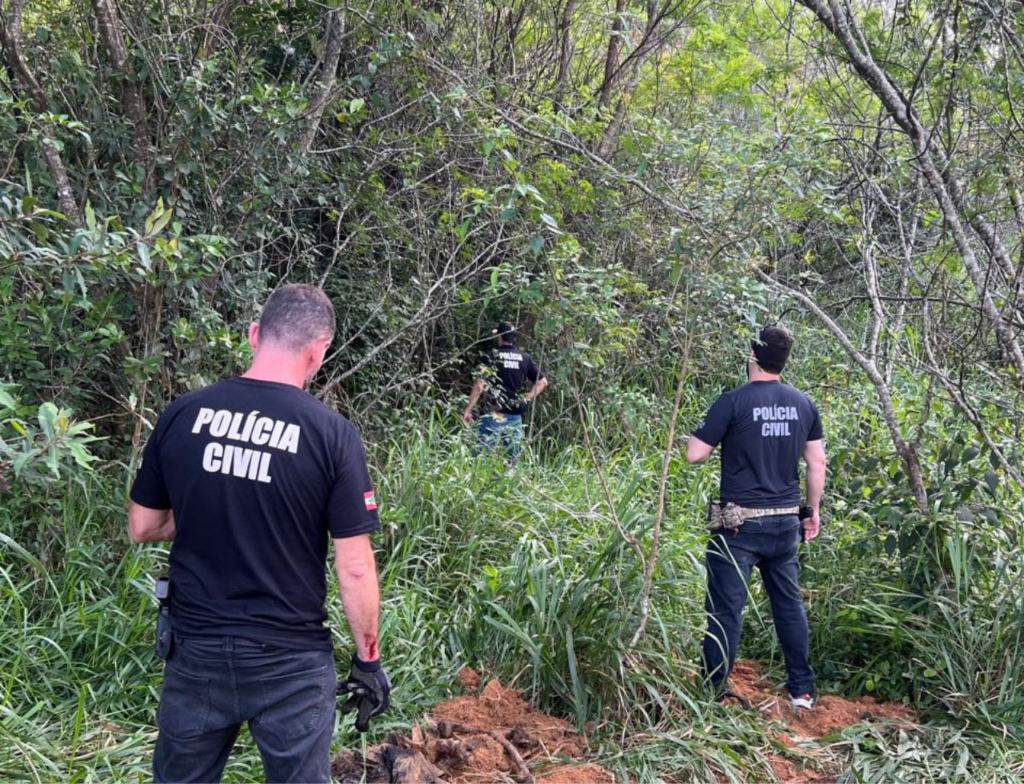 A equipe da Delegacia de Roubos e Antissequestro (DRAS/DEIC) encontrou, na tarde do dia 18, um corpo enterrado em uma área de mata no bairro Pedregal, em São José. A descoberta ocorreu durante uma operação relacionada ao desaparecimento de um casal em Biguaçu, no dia 11 de novembro, após denúncias indicarem possíveis pistas na região. O corpo estava escondido entre a vegetação e, pelo avançado estado de decomposição, foi identificado como sendo de outra pessoa, morta há cerca de um ano.