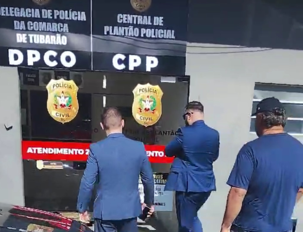 O suspeito chegou à Delegacia de Polícia acompanhado de seu advogado. A reportagem da Rádio Cidade Tubarão está no local acompanhando os desdobramentos de forma exclusiva.