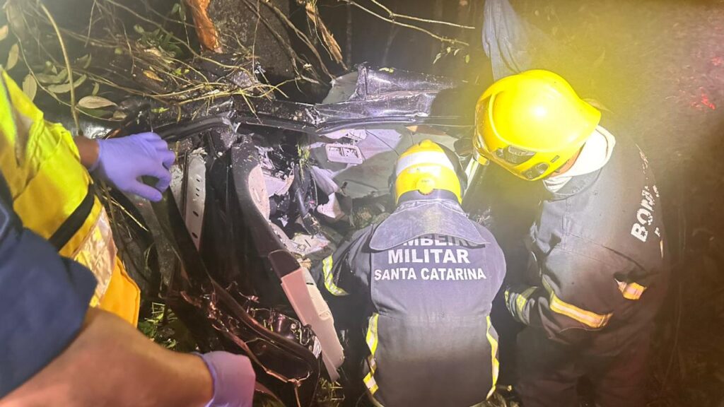Equipes do Corpo de Bombeiros de Orleans e São Ludgero foram acionadas para atender a ocorrência e no local, as guarnições encontraram as vítimas presas nas ferragens de um Toyota/Corolla.