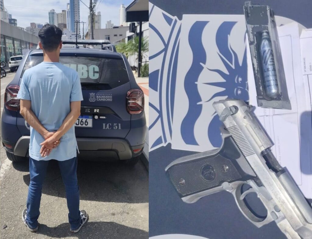 O homem foi encaminhado à Central de Plantão Policial (CPP) de Balneário Camboriú, onde foi constatado que ele tem antecedentes criminais por homicídio, ameaça, lesão corporal, injúria e porte ilegal de arma de fogo ou simulacro.