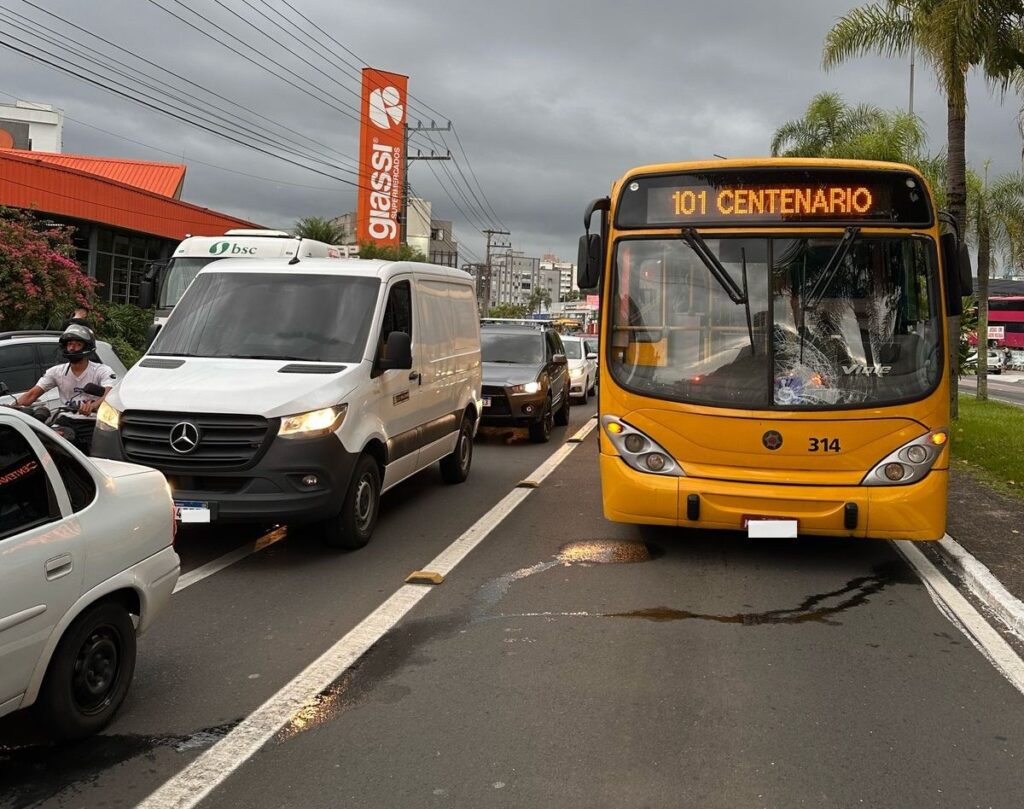Na tarde desta terça-feira, 18, um homem foi atropelado pelo ônibus Amarelinho, na Avenida Centenário, no Centro de Criciúma.