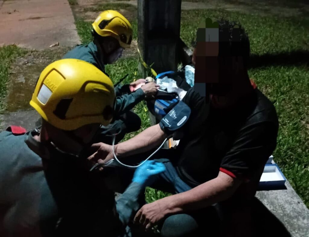 Guarnição do Corpo de Bombeiros resgatou um homem de 35 anos que foi jogado por colegas em um barranco em Lauro Muller na noite de sábado. A vítima foi vista inicialmente por pessoas que passavam pelo local, no Rio Manin, Traviso, que acionaram o resgate.