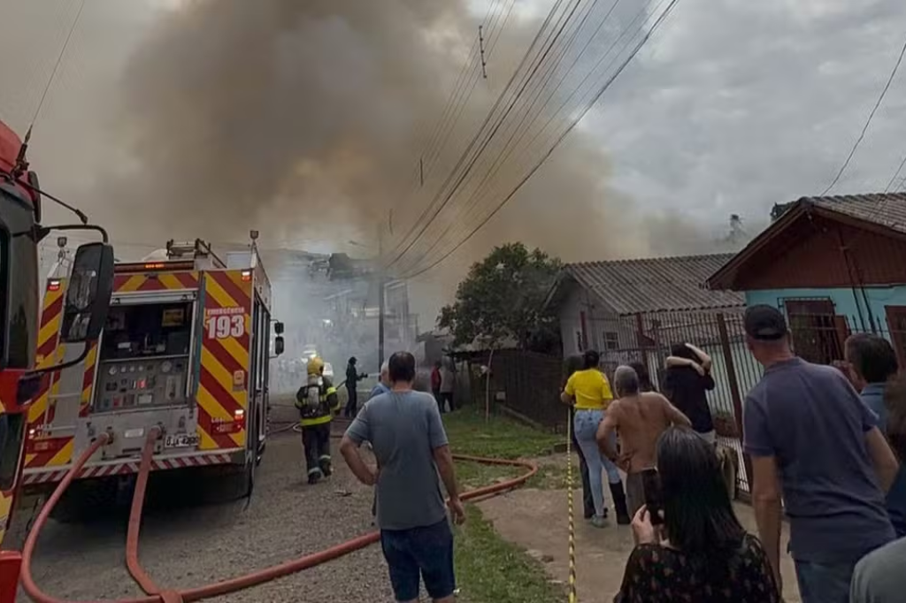 Um homem de 37 anos foi preso em Lages, na Serra de Santa Catarina, suspeito de trancar e incendiar a casa onde estava seu pai, após uma discussão na tarde de domingo (1º). O incêndio destruiu completamente a residência de 70 metros quadrados, atingiu casas vizinhas no bairro Triângulo e exigiu 15 mil litros de água para ser controlado pelo Corpo de Bombeiros. O pai do suspeito foi encontrado morto no banheiro da casa.