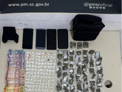 Na noite de segunda-feira (3), durante o Carnaval, um homem foi detido por tráfico de drogas no bairro Caminho Novo. Policiais do 16° Batalhão da Polícia Militar de Santa Catarina, de Palhoça, realizavam patrulhamento na área quando notaram o suspeito tentando se esconder.