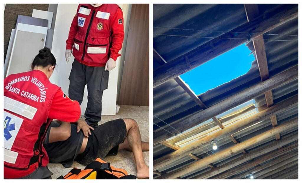 Os Bombeiros Voluntários de Jaguaruna foram acionados na tarde dessa quarta-feira, 27, por volta das 15h30 para atender um homem, de 33 anos, que sofreu uma queda do telhado quando realizava manutenção, na na Rodovia Municipal Domingos Gilson, em Treze de Maio.