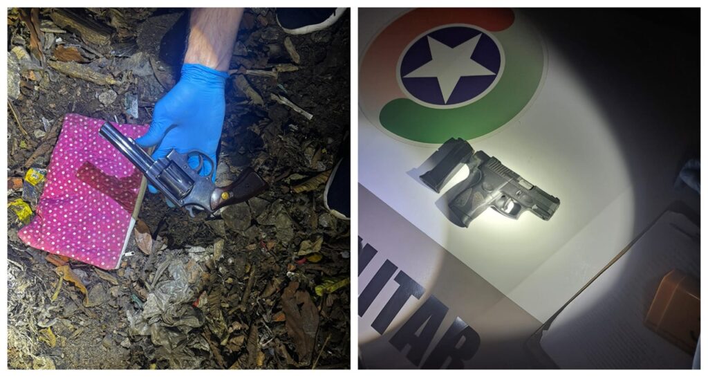 Durante a verificação da área foi localizado mais um revólver calibre .38 com seis munições intactas mais seis munições sobressalentes próximos do local do confronto.