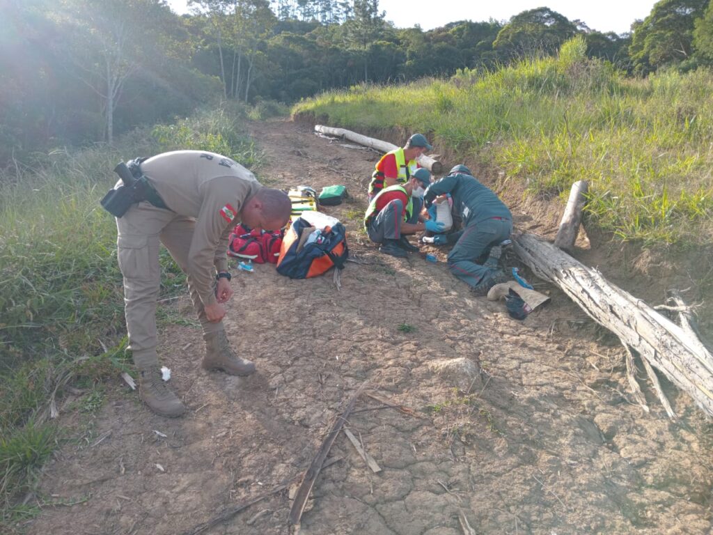 Foi solicitado o auxílio da aeronave do Sara Sul pra transporte devido ao difícil acesso. O homem foi encaminhado estável ao hospital Nossa Senhora da Conceição, em Tubarão.