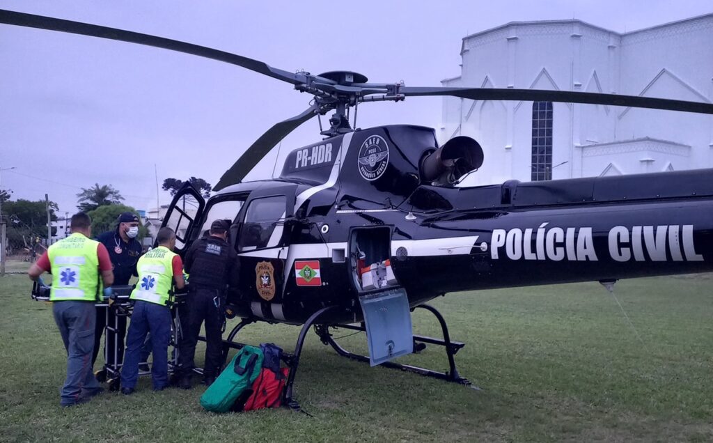 Ela foi transportada de helicóptero para o Hospital São José em Criciúma, que é referência em trauma.