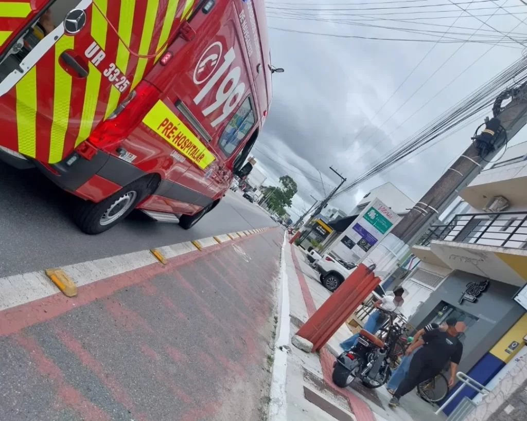 Idosa fica ferida após colisão entre automóvel e motocicleta elétrica em Navegantes