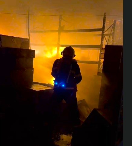 Galpão de reciclagem de materiais eletrônicos com estrutura metálica, no bairro Ponta de Baixo, em São José, foi atingido por incêndio na noite dessa sexta-feira (15).