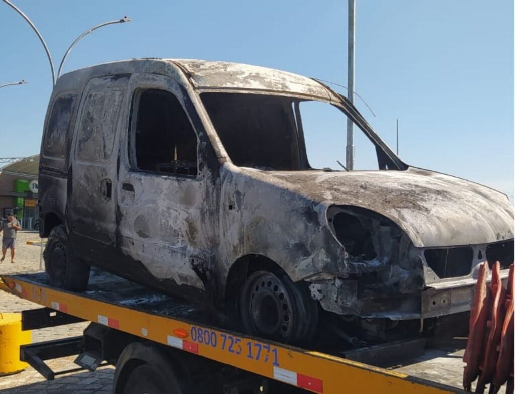 Renault Kangoo pegou fogo na manhã desta segunda-feira na BR 101 em Itajaí ; trânsito foi liberado parcialmente após mais de uma hora