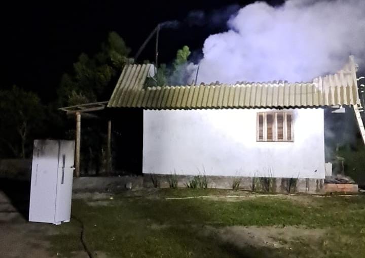 Na noite deste sábado (5), por volta das 20h14, um incêndio atingiu uma cabana de alvenaria com forro de madeira na Praia Guairaca, em Balneário Arroio do Silva. Quando os bombeiros chegaram ao local, o fogo já estava em estágio avançado e havia comprometido boa parte da estrutura. A equipe realizou os procedimentos de segurança, combate direto às chamas e rescaldo, utilizando cerca de 6.500 litros de água.