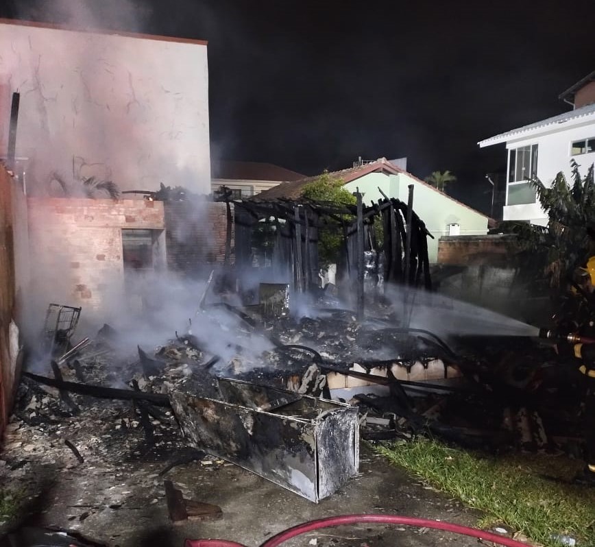 Ao chegarem no local, as equipes do o Corpo de Bombeiros (CBMSC) constataram que o fogo se alastrava para uma residência vizinha, que teve apenas o seu beirado atingido pelas chamas.