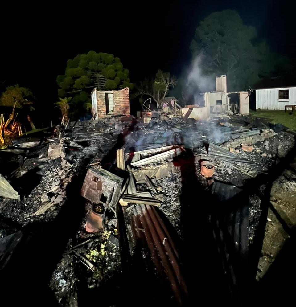 O Corpo de Bombeiros foi acionado e deslocou para atender ao chamado do Centro de Operações dos Bombeiros Militares (Cobom), a guarnição, ao chegar no local, constatou que se tratava de uma residência que já havia sido consumida pelas chamas.