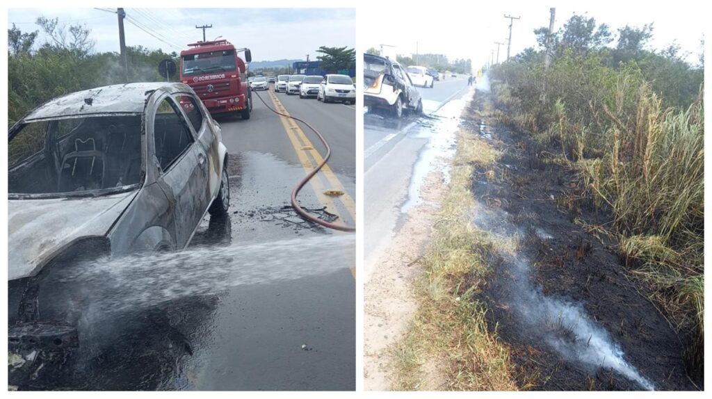 O Corpo de Bombeiros foi acionado para o atendimento do incêndio em veículo e no local havia trânsito intenso e interrompido devido ao veículo em chamas se encontrar em cima da pista, onde foi realizado o combate ao fogo com a utilização de aproximadamente 550 litros de água para extinção e também às chamas nas margens da rodovia, que havia se propagado na vegetação.