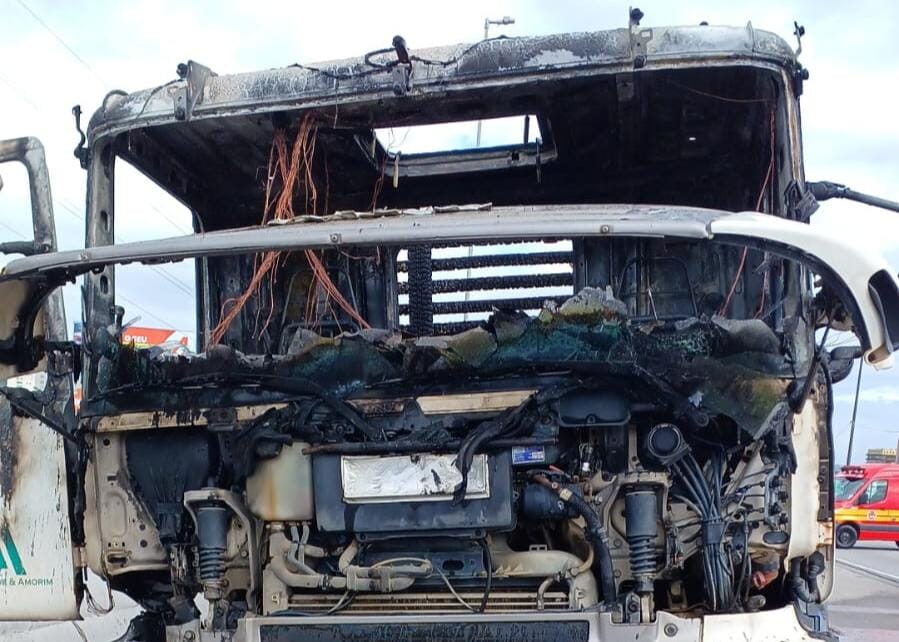 O fogo estava concentrado na parte inferior da cabine do motorista. Para conter as chamas e evitar maiores danos, os bombeiros utilizaram aproximadamente 2.500 litros de água no combate ao incêndio.