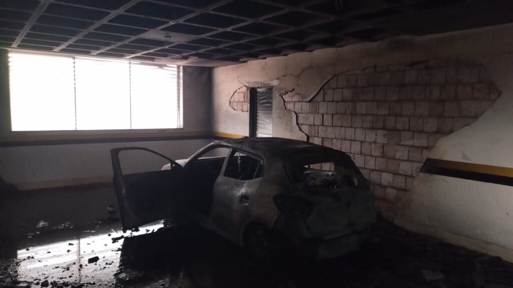 Na tarde de quinta-feira (31), o Corpo de Bombeiros Militar de Santa Catarina foi acionado para combater um incêndio em um prédio localizado na Avenida Elza Lucchi, em Palhoça. O incêndio começou na garagem do edifício, onde um veículo estava em chamas, gerando fumaça visível desde a parte externa. A garagem está situada no pavimento superior ao térreo, o que facilitou a dispersão da fumaça.