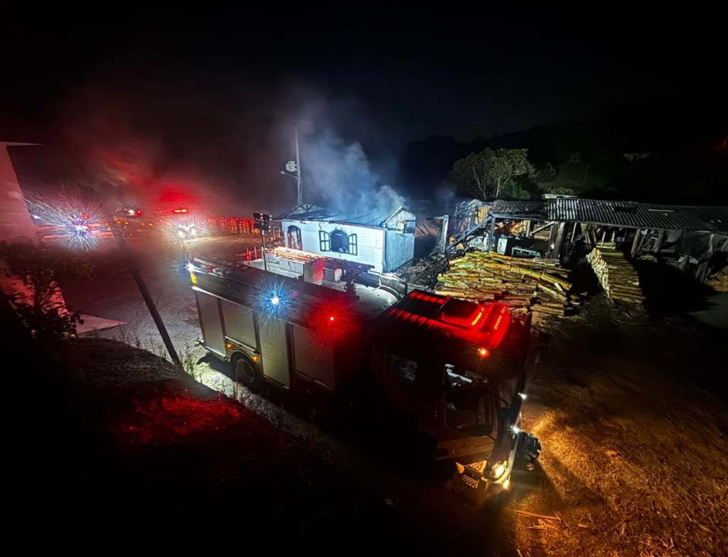 Ao todo, cerca de 23.000 litros de água foram usados no combate ao incêndio, com a participação de 10 bombeiros e apoio de quatro caminhões de combate a incêndio, além de duas viaturas de apoio. Durante a ocorrência, a cooperativa de eletricidade local também esteve presente, realizando o desligamento da rede elétrica para garantir a segurança das equipes.