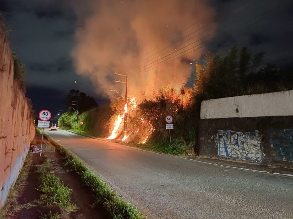 Na noite deste domingo (21), o Corpo de Bombeiros Militar combateu um incêndio em uma área de vegetação, na região do bairro Forquilhinhas, no município de São José, nas proximidades da BR-101.