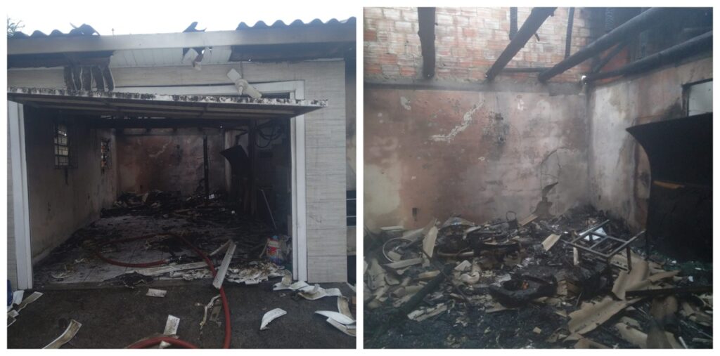 Todos os pertences armazenados no local, incluindo uma motocicleta foram completamente destruídos pelas chamas.