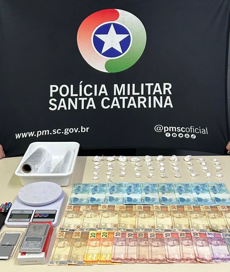 Durante a abordagem, foram apreendidas certa quantidade de cocaína, fracionada em 42 porções prontas para a comercialização, duas balanças de precisão, um aparelho celular, dinheiro em espécie, além de embalagens e outros materiais relacionados ao tráfico de entorpecentes.