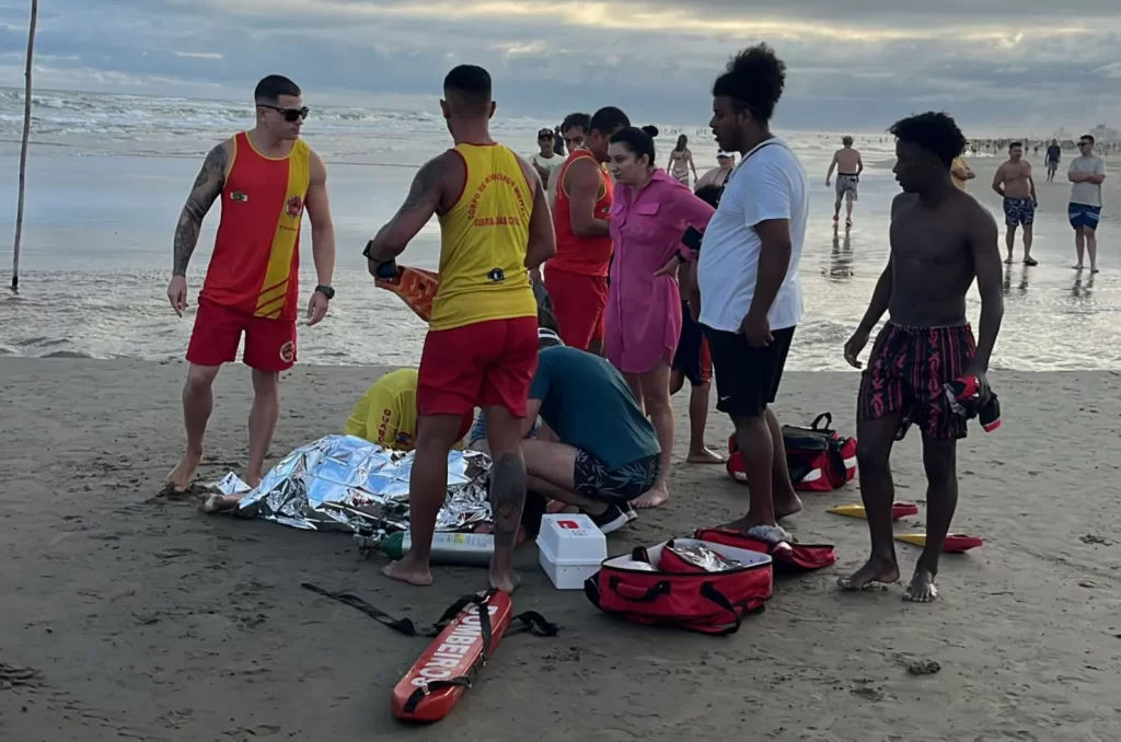 De acordo com o relato dos bombeiros, a jovem sofreu inicialmente um afogamento classificado como grau 1, mas após avaliação médica no local, foi reclassificada para grau 2. Ela foi encontrada na faixa de areia deitada de lado, estabilizada e recebendo suporte de oxigênio pela guarnição e a equipe de guarda-vidas.