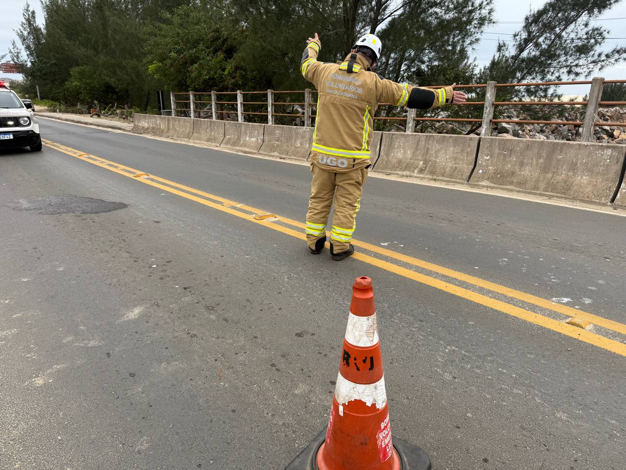 A força da água comprometeu a estrutura da pista por volta das 3h30, levando ao acionamento dos Bombeiros Voluntários, que fizeram a sinalização e isolaram uma das faixas.