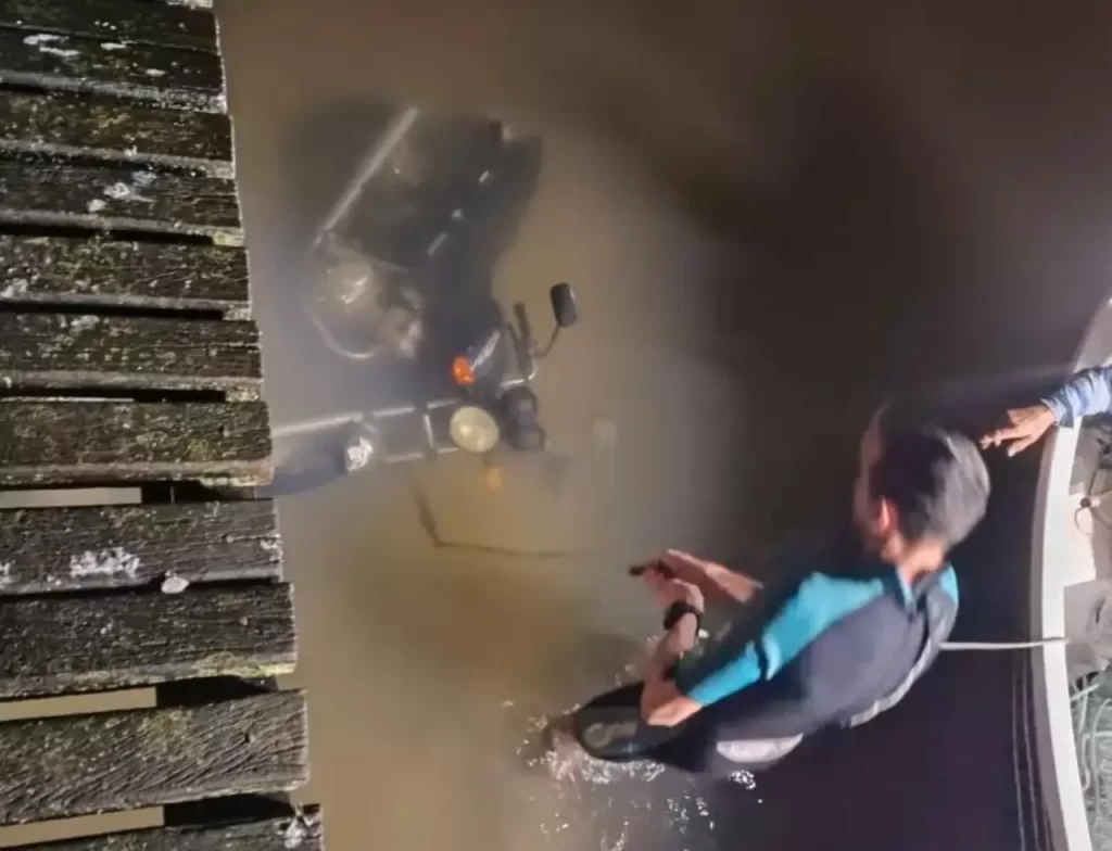 Na segunda-feira, 15 de julho, um funcionário de um posto de gasolina foi assaltado enquanto transportava um malote de dinheiro para uma agência bancária. A ação foi capturada por câmeras de segurança, que identificaram a placa da moto usada pelos criminosos. Após buscas intensas, a motocicleta foi localizada por mergulhadores na Costeira.
