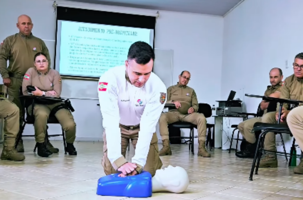 Na manhã desta sexta-feira (14), foi realizada no 5º Batalhão de Polícia Militar (BPM), uma instrução ministrada pelo capitão médico Alexandre Nunes Medeiros, que abordou a identificação e o manejo da Parada Cardiorrespiratória (PCR), com ênfase no uso do Desfibrilador Externo Automático (DEA).