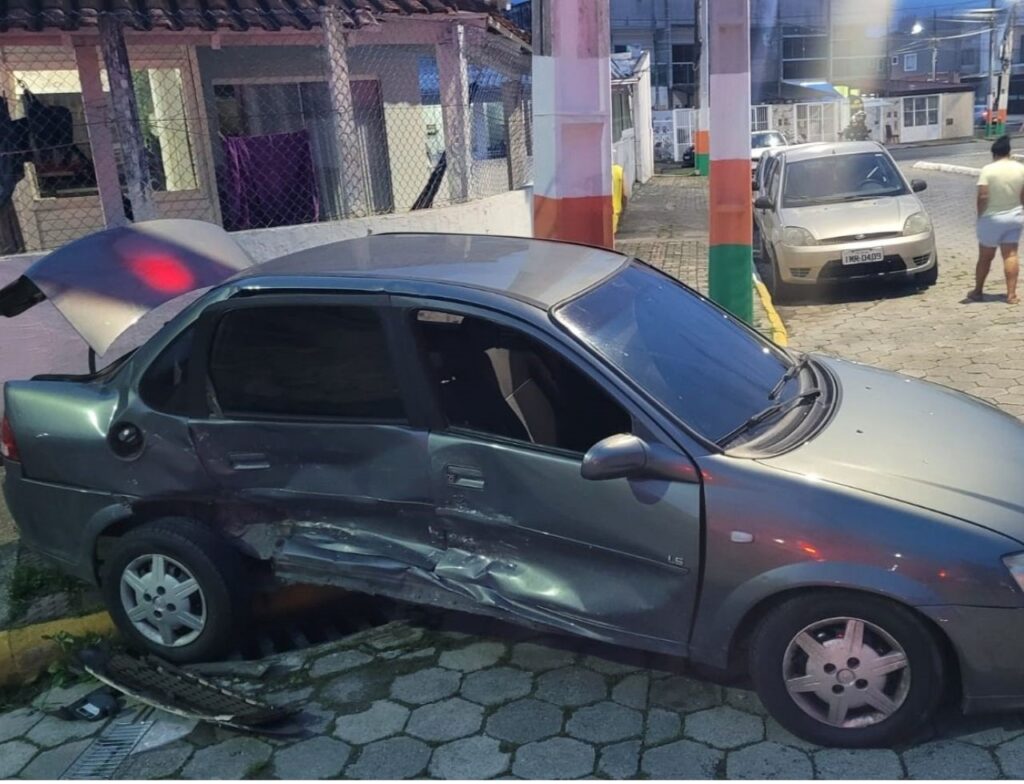 Um motorista em fuga colidiu com um carro na noite de ontem no bairro Santa Regina, em Camboriú. Testemunhas disseram que no veículo atingido estava um casal e uma criança.