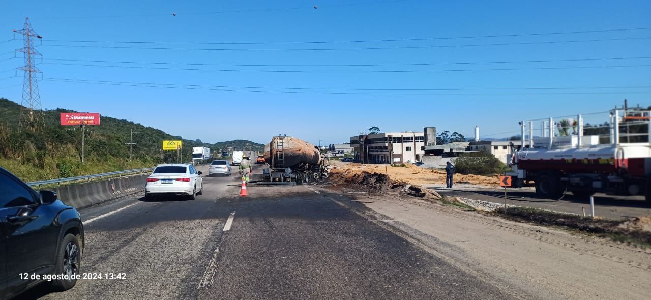 Neste momento, o sentido norte da rodovia está totalmente liberado. Já o sentido sul está fluindo apenas pela faixa da esquerda. Durante a ocorrência, filas de até 4 quilômetros de congestionamento foram registradas.